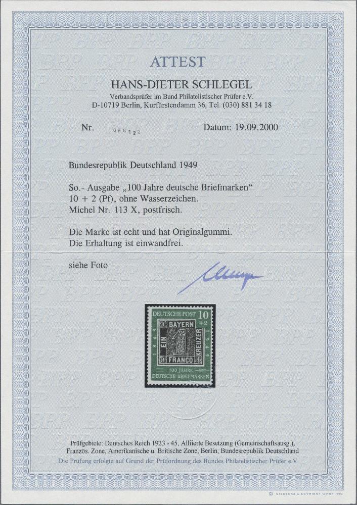 | Prüfer: | Schlegel, Hans-Dieter (BPP (Bund Philatelistischer Prüfer)) |