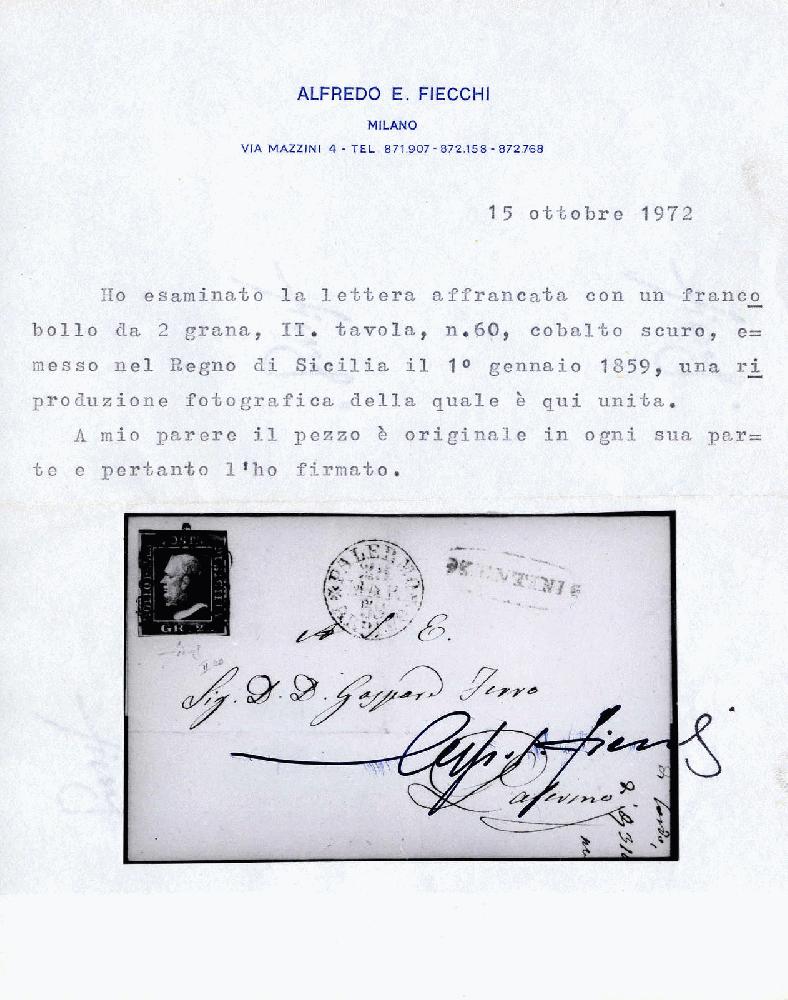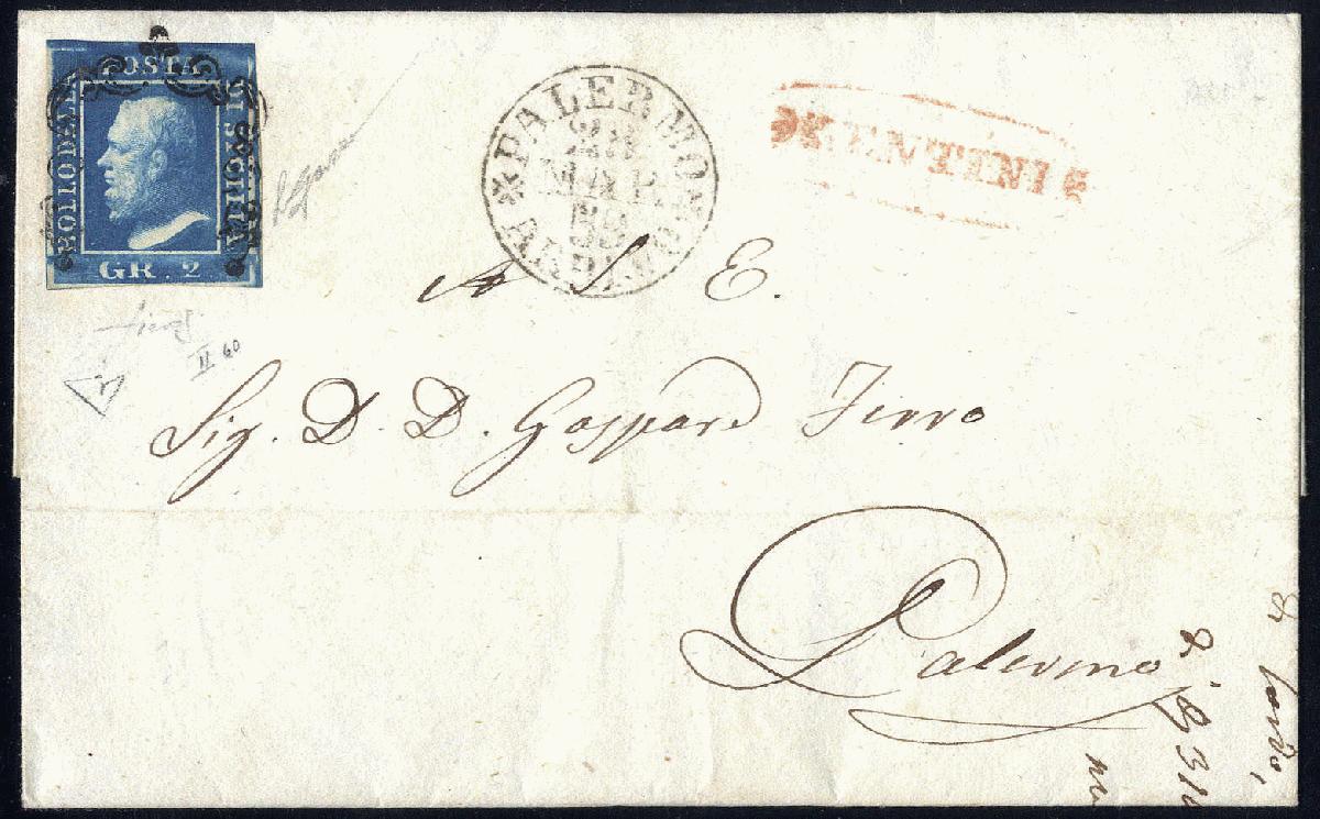 | Zusatzinformationen und Suchstichworte: | 74. Viennafil Fernauktion 19. September 2022 Los 18274 Italien Staaten Sizilien 1859, lettera da Lentini (ovale rosso, Punti 9) il 28.3. per Palermo affrancata con 2 grana cobalto scuro, certificato Fiecchi, Sass. 7c / 4750,- Ausruf 500,00 EUR |