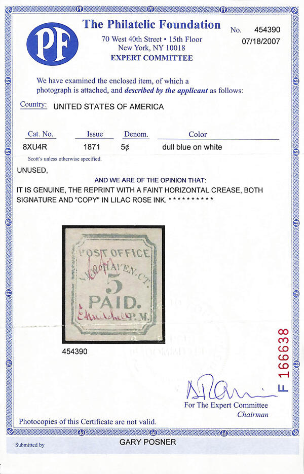 | Prüfer: | The Philatelic Foundation, (Prüferkommission) |