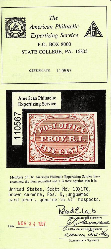 | Prüfer: | APS, (American Philatelic Society) (Prüferkommission) |