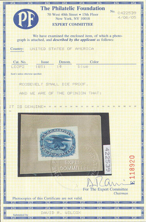 | Prüfer: | The Philatelic Foundation, (Prüferkommission) |