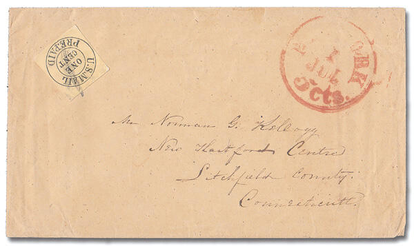 | Zusatzinformationen und Suchstichworte: | Kelleher Auktion 2002. - The Kelleher Club Sale 18. - 20. Oktober 2022 Los 1867 USA Carriermarken New York, N. Y. Vereinigte Staaten Stadt Abfertigung Post, 1849-50, 1¢ schwarz auf sämisch (Scott 6LB11), schöne Ränder, entwertet mit einem Bleistift Stempel auf Brief gestempelt mit ein teilweise rot "New-York/5 cts" Datumsstempel zu neu Hartford Zentrum Ct. feinst bis Pracht, mit ein 1995 P. F. Attest. Scott $250. Ausruf 50,00 USD |