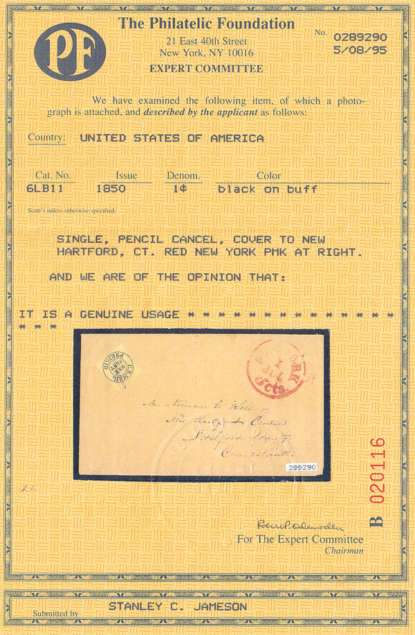 | Prüfgebiet: | USA (Postmeistermarken und Carriermarken 1842-1860) |