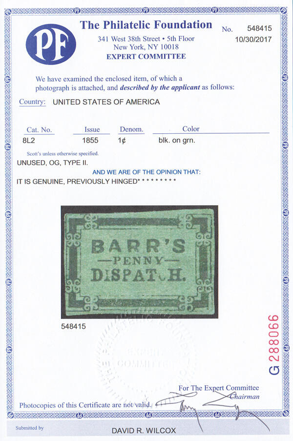 | Prüfer: | The Philatelic Foundation, (Prüferkommission) |
