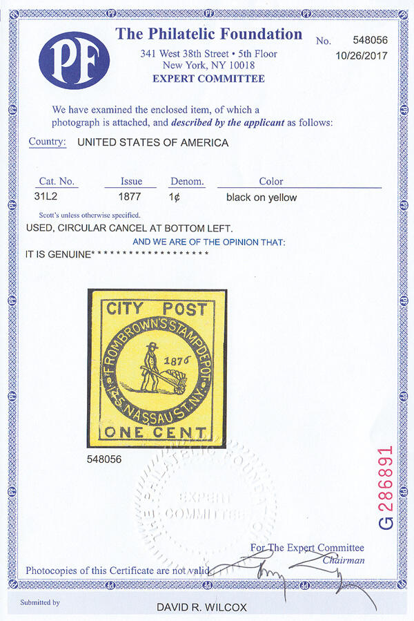 | Prüfer: | The Philatelic Foundation, (Prüferkommission) |