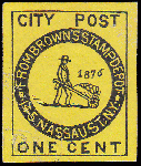| Zusatzinformationen und Suchstichworte: | Kelleher Auktion 2002. - The Kelleher Club Sale 18. - 20. Oktober 2022 Los 1887 USA Carriermarken Lokalausgaben Browns Stadt Post, 1876,1¢ schwarz auf gelb (Scott 31L2), leuchtend frisch mit vollen bis breiten Rändern; hell Kreisstempel unten links, Pracht, mit ein 2017 P. F. Attest. Scott $275. Ausruf 80,00 USD |