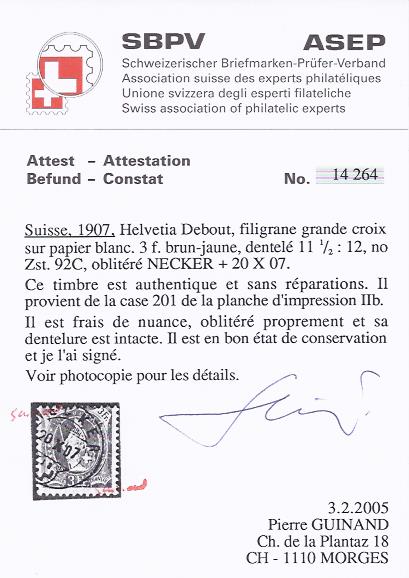 | Prüfer: | Guinand, Pierre (SBPV / ASEP (Schweizerischer Briefmarken-Prüfer-Verband)) |