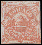 | Zusatzinformationen und Suchstichworte: | Kelleher Auktion 2002. - The Kelleher Club Sale 18. - 20. Oktober 2022 Los 1895 USA Carriermarken Lokalausgaben Chicago Penny Post, 1862 (1¢) orangebraun (Scott 38L1), ungebraucht ohne Gummi, Vortrennschnitt schmaler ringsum; kleines natürlicher Papiereinschluss, fein, mit 2007 P. F. Attest. Scott $800. Ausruf 80,00 USD |