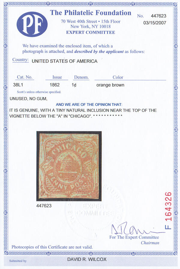 | Prüfer: | The Philatelic Foundation, (Prüferkommission) |