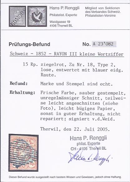 | Prüfer: | Renggli, Hans P. (SBPV / ASEP (Schweizerischer Briefmarken-Prüfer-Verband)) |