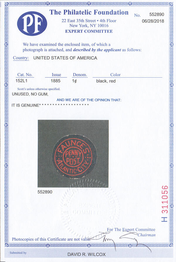 | Prüfer: | The Philatelic Foundation, (Prüferkommission) |