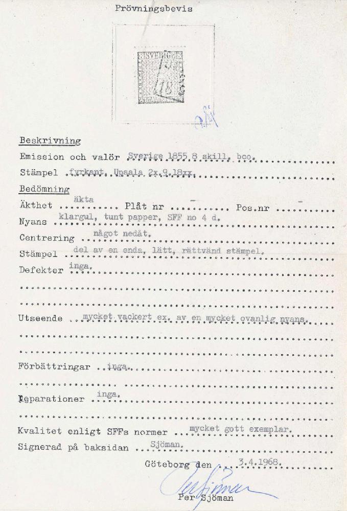 | Zusatzinformationen und Suchstichworte: | Postiljonen 237. Int. Briefmarken Auktion 29. September - 01. Oktober 2022 Los 1004 Schweden Skilling Banco Beautiful 8 Sk. Bco in the scarcer shade bright yellow with part of "UPSALA" canc. F=14.000. Cert. Sjöman. VERY FINE. Zuschlag 240,00 EUR |