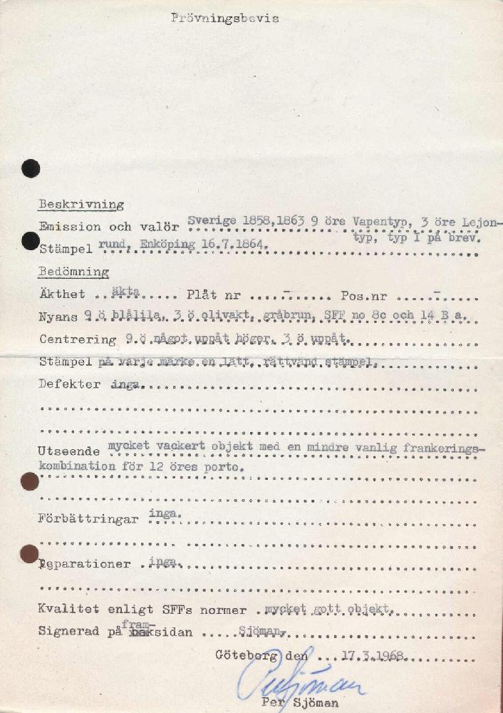 | Zusatzinformationen und Suchstichworte: | Postiljonen 237. Int. Briefmarken Auktion 29. September - 01. Oktober 2022 Los 1090 Schweden Löwen Ausgabe Wonderful small cover with 9 öre blue lilac together with 3 öre type II in the scarce shade weakly olivish grey brown "ENKÖPING 16.7 1864". Cert. Sjöman. VERY FINE Ausruf 750,00 EUR |