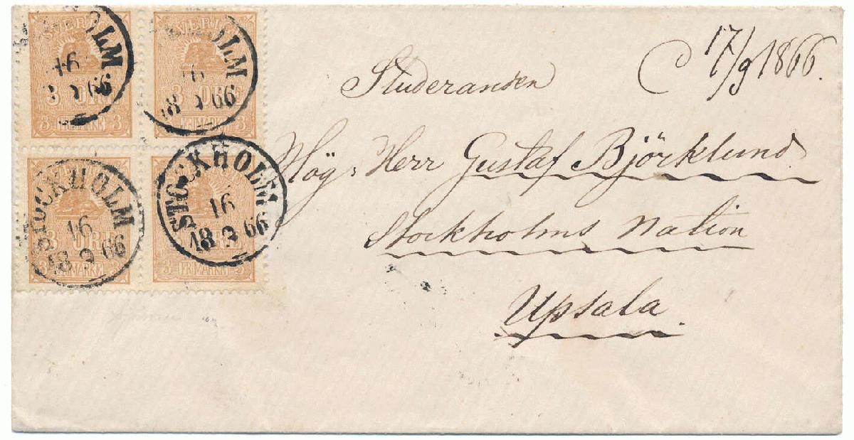 | Zusatzinformationen und Suchstichworte: | Postiljonen 237. Int. Briefmarken Auktion 29. September - 01. Oktober 2022 Los 1164 Schweden Löwen Ausgabe Block of Four on Cover Very beautiful cover with a well centered block of four of 3 öre brown type II with four well placed "STOCKHOLM 16.9 1866". Cert. Sjöman. VERY FINE - SUPERB EXHIBITION ITEM Provenance: Lauson H. Stone, Grand Prix Sven-Erik Beckeman Zuschlag 3.200,00 EUR |