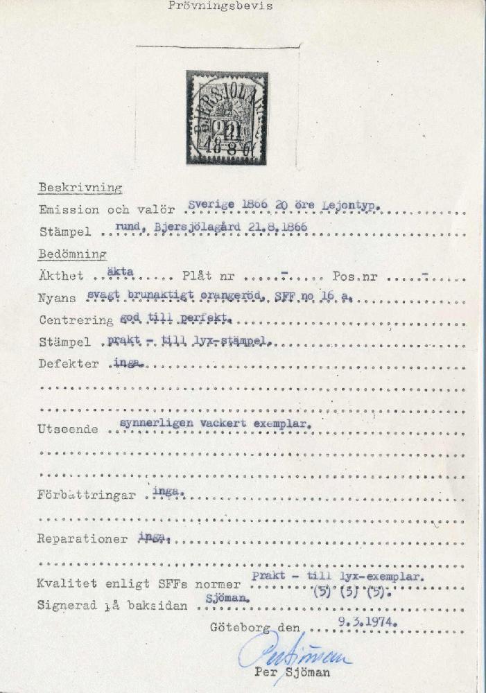 | Zusatzinformationen und Suchstichworte: | Postiljonen 237. Int. Briefmarken Auktion 29. September - 01. Oktober 2022 Los 1205 Schweden Löwen Ausgabe Very beautiful 20 öre weakly brownish orange red with very clear "BJERSJÖLAGÅRD 21.8 1866". Cert. Sjöman. SUPERB - EXCELLENT Zuschlag 130,00 EUR |