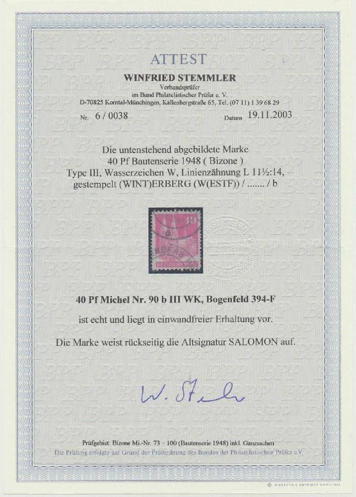 | Prüfer: | Stemmler, Winfried (BPP (Bund Philatelistischer Prüfer)) |