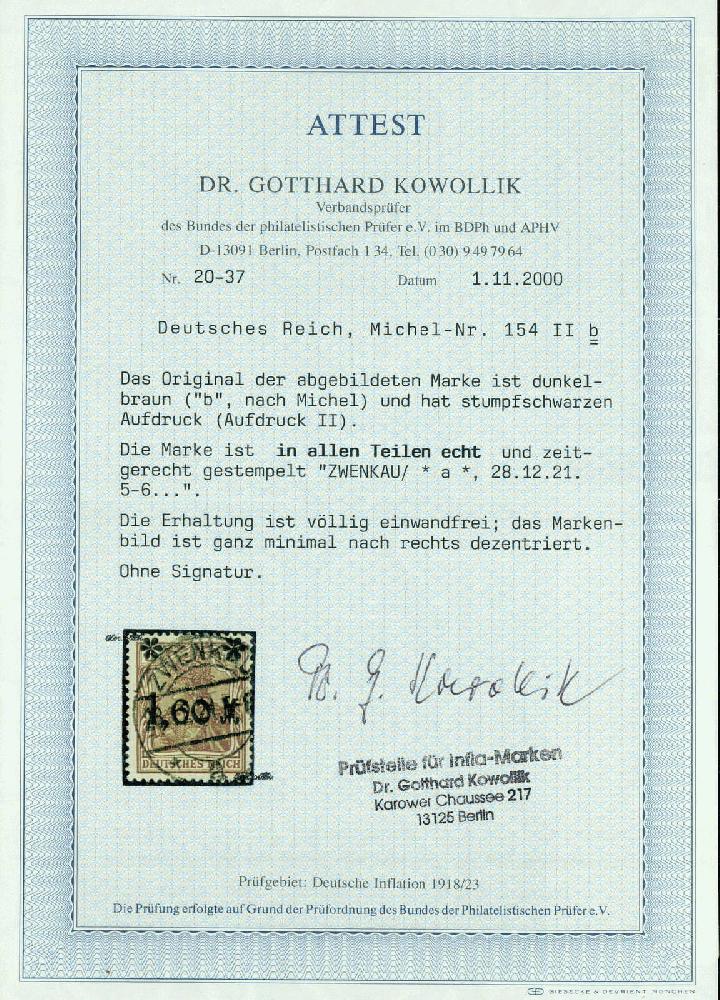 | Prüfgebiet: | Deutsches Reich 1919 - 1923 (Mi-Nr. 107 - 343) |