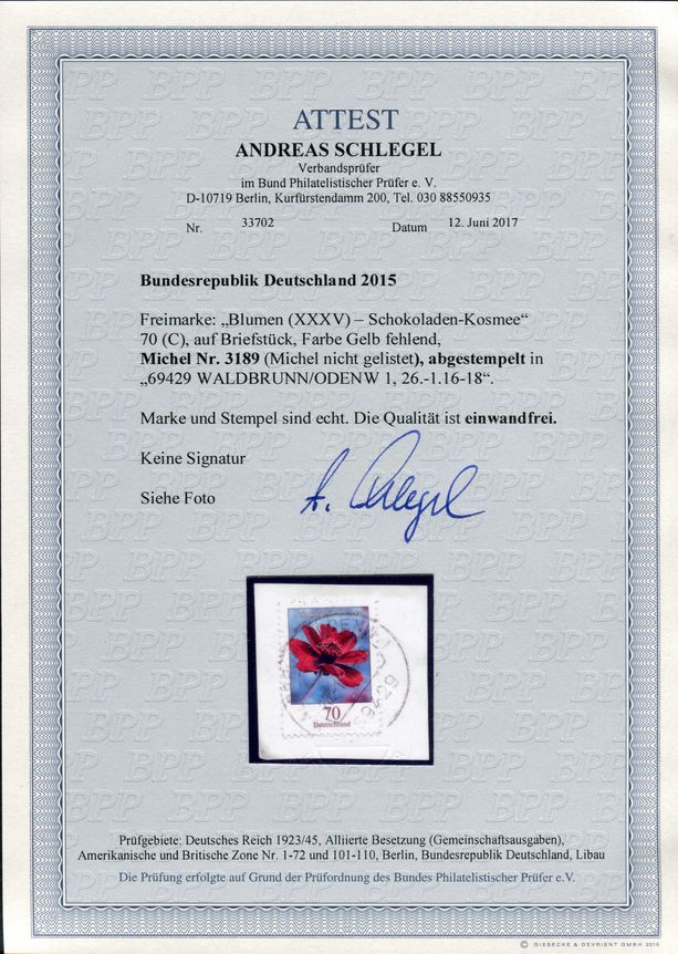 | Prüfer: | Schlegel, Andreas (BPP (Bund Philatelistischer Prüfer)) |