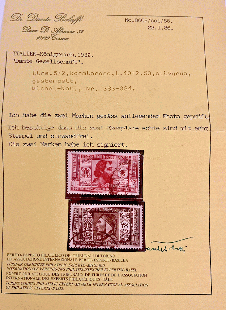 | Zusatzinformationen und Suchstichworte: | ebay.de Italien Königreich 1932 - Dante, Höchstwerte, Zertifikat Bolaffi, KW: 1275€ Ausruf 49,00 EUR |