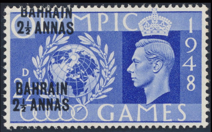 | Zusatzinformationen und Suchstichworte: | Doreen Royan & Associates Shop - Online Los 750637 (D) Bahrain Bahrain 1948 King George VI Olympic Games. 2½a. on 2½d. ultramarine. Variety, ‘Surcharge double’. Superb unmounted mint condition. KGVI Expertising Certificate No. 1014/11-08 (2008). EXCEEDINGLY RARE. Festpreis 3.250,00 GBP |