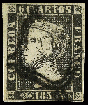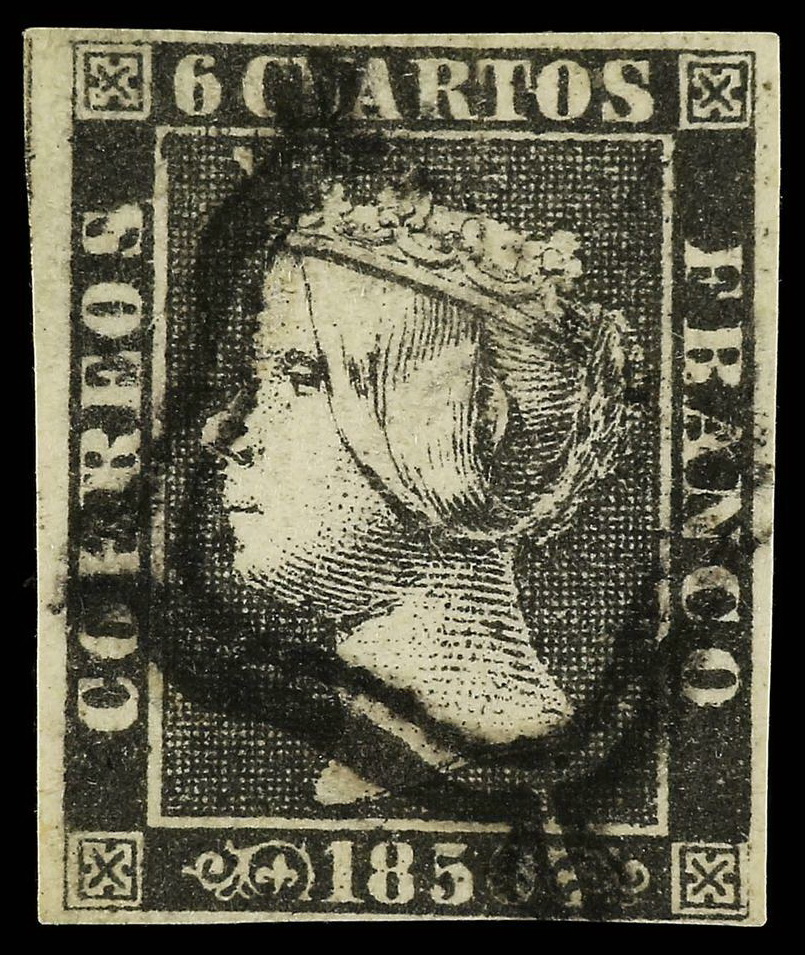 | Zusatzinformationen und Suchstichworte: | Casa de Subastas de Madrid - 634. Auktion 21. - 22. Oktober 2022 Los 51 Spanien ESPAÑA. 6 cuartos negro, pl. II (tipo 13). Mat. ARAÑA HUECA de SANTA CRUZ DE TENERIFE. Muy rara. Cert. SORO. Se incluye frontal con 1A pl. II con mat. araña azul y en el frente marca CABA DEL BUEY/ESTREMADURA/BAXA (posible montaje). A EXAMINAR. Ed.1A Ausruf 150,00 EUR |
