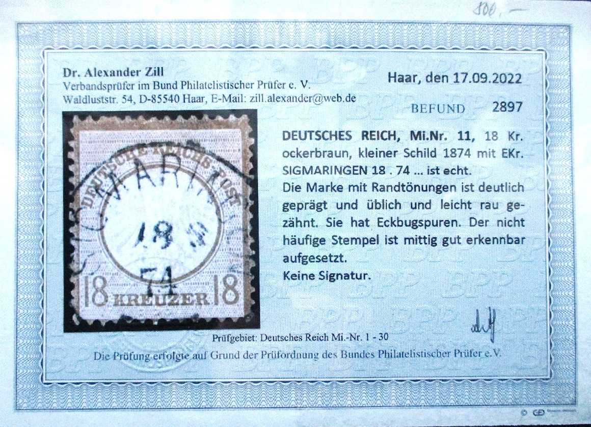 | Prüfer: | Zill, Alexander (BPP (Bund Philatelistischer Prüfer)) |