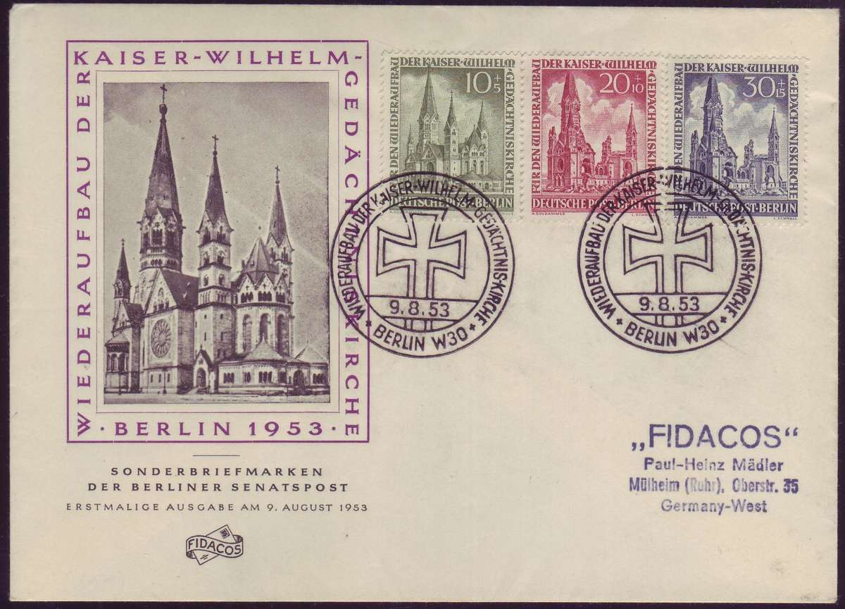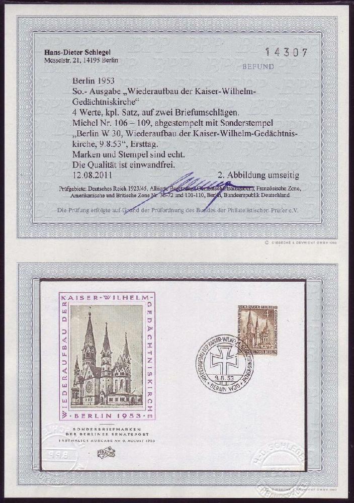 | Zusatzinformationen und Suchstichworte: | Christian E. Geigle Briefmarkenfachhandel Los 0001820982 Berlin 1953, Gedächtniskirche, 4 W. kpl. auf zwei privaten Schmuck-FDC mit glasklaren ESSt. "BERLIN W 30 9.8.53", FB Schlegel "einwandfrei" Festpreis 175,00 EUR |