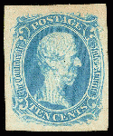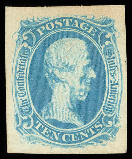 | Zusatzinformationen und Suchstichworte: | Kelleher 774. Auktion 13. - 16. September 2022 Los 4159 Konföderierte Staaten 1863,10¢ blau, "T-E-N" (Scott 9), großer Teil Originalgummi bemerkenswert frisch mit brillanten Farben und sauber Prägung, gerandet volles und ausgeglichen, Kabinett, mit 2019 P. F. Attest eingestuft Kabinett 90. SMQ Kabinett 90; $1,500 für gefalzt. Scott $900. Ausruf 750,00 USD |