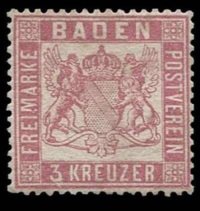 | Zusatzinformationen und Suchstichworte: | Loth 188. Auktion 28. - 29. Oktober 2022 Los 1016 Altdeutschland Baden 1862, 3 Kr. rosa, ungebrauchtes, vollzähniges Stück mit vorderseitig minimaler lagerungsbedingter Tönungsspur, ansonsten tadellose Erhaltung, Fotoattest Stegmüller "...echt, ungebrauchte Exemplare dieser Marke sind selten" Zuschlag 540,00 EUR |