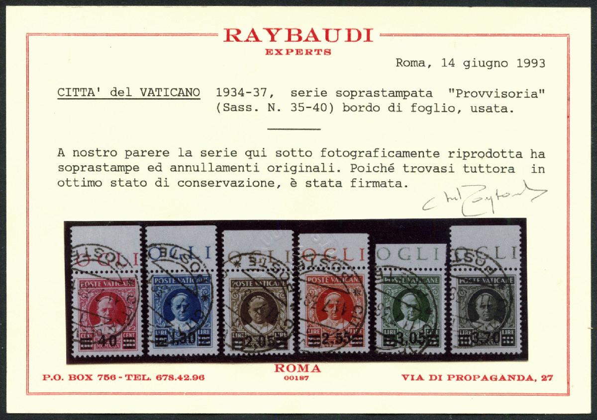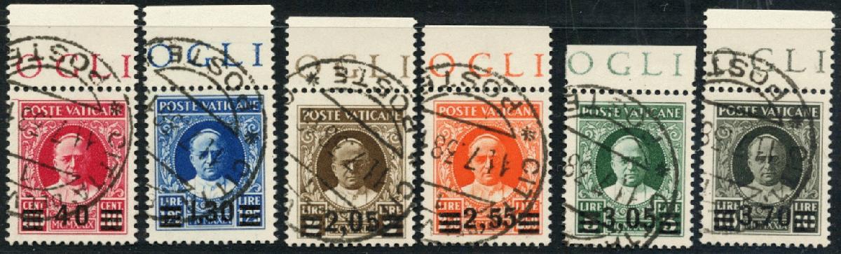| Zusatzinformationen und Suchstichworte: | 109. Briefmarken Lenz Auktion 31. Oktober - 3. November 2022 Los 2184 Vatikanstaat 1934/37, Provisorien-Ausgabe kpl., klar fast zentr. gest. Luxussatz, alle Werte mit Oberrand, Fotoattest Raybaudi Ausruf 350,00 EUR |
