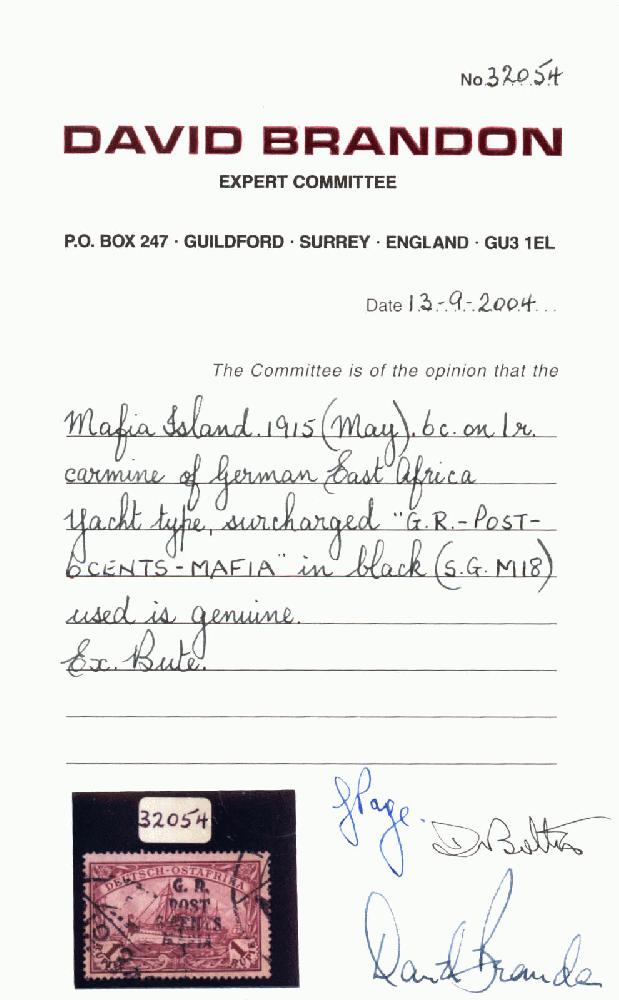 | Prüfgebiet: | Deutsche Kolonien Deutsch-Ostafrika Britische Besetzung |