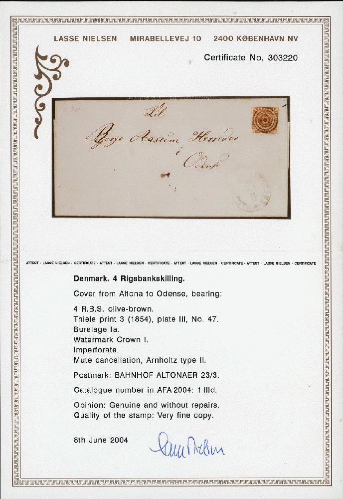 | Zusatzinformationen und Suchstichworte: | Skanfil Auktion - Herbst Auktion 2022 9. - 12. November 2022 Los 2005 Dänemark 1. 4 R.B.S. Thiele III gulbrun plate IV No. 47 - stemplet stumt 4-ringsstempel på brevomslag sidestemplet "Bahnhof Altonaer 23/3" sendt til Odense. Attester Witt og L. Nielsen Ausruf 1.000,00 NOK |