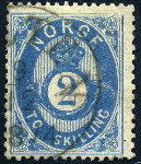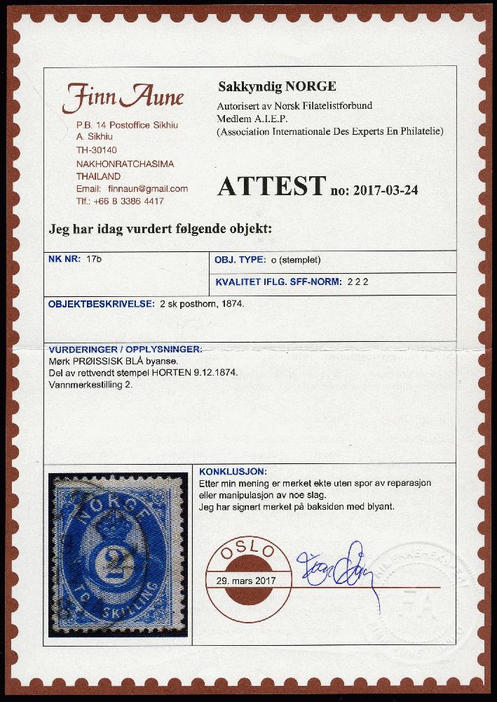 | Zusatzinformationen und Suchstichworte: | Skanfil Auktion - Herbst Auktion 2022 9. - 12. November 2022 Los 3820 Norwegen Skilling Posthorn 17b. Meget fargefriskt merke i mørk prøyssisk blå nyanse med del av stempel "Horten 9.12.1874". Uvanlig i så flott farge. Vannmerkestilling 2. Attest Finn Aune. (SK 40.000.-) Ausruf 20.0000,00 NOK |