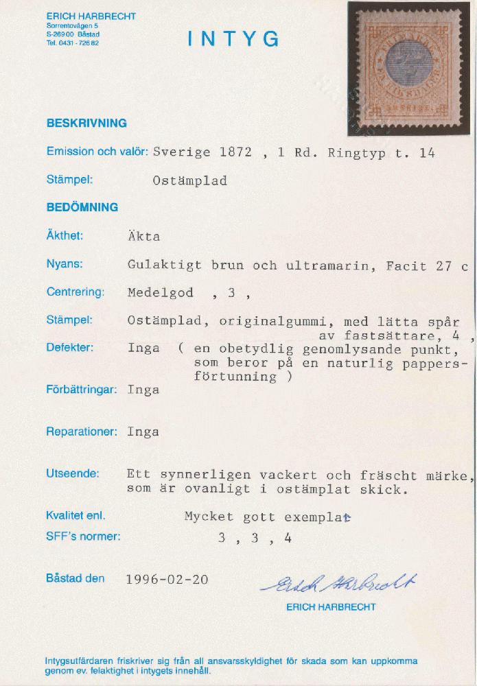 | Zusatzinformationen und Suchstichworte: | Postiljonen 237. Int. Briefmarken Auktion 29. September - 01. Oktober 2022 Los 1280 Schweden Ziffer im Kreis AusgabeBeautiful copy of 1 Rd. yellowish brown and ultramarine in lightly hinged copy. F=9.500. Cert. Harbrecht. VERY FINE. Zuschlag 220,00 EUR |