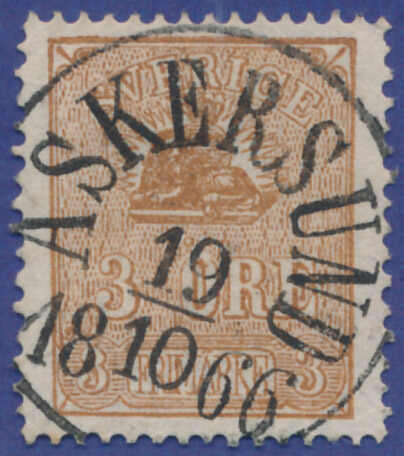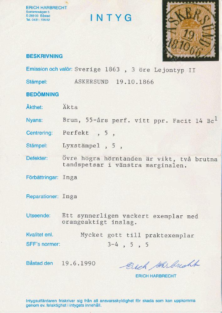 | Zusatzinformationen und Suchstichworte: | Postiljonen 237. Int. Briefmarken Auktion 29. September - 01. Oktober 2022 Los 1163 Schweden Löwen Ausgabe Beautiful 3 öre brown type II with very clear "ASKERSUND 19.10 1866". Some minor imperfections. Cert. Harbrecht. VERY FINE - SUPERB. Zuschlag 70,00 EUR |