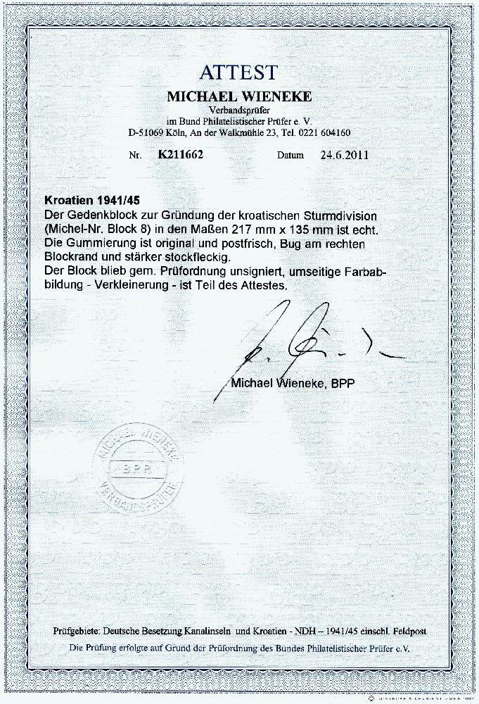 | Zusatzinformationen und Suchstichworte: | Gedenkblock zur Gründung der kroatischen Sturmdivision |