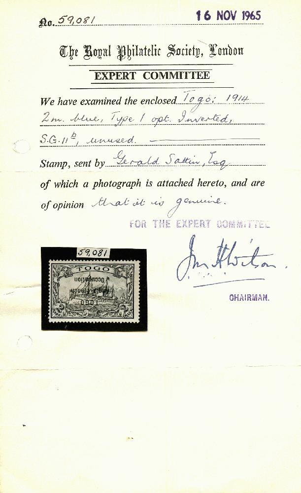 | Prüfgebiet: | Deutsche Kolonien Togo Französische Besetzung |