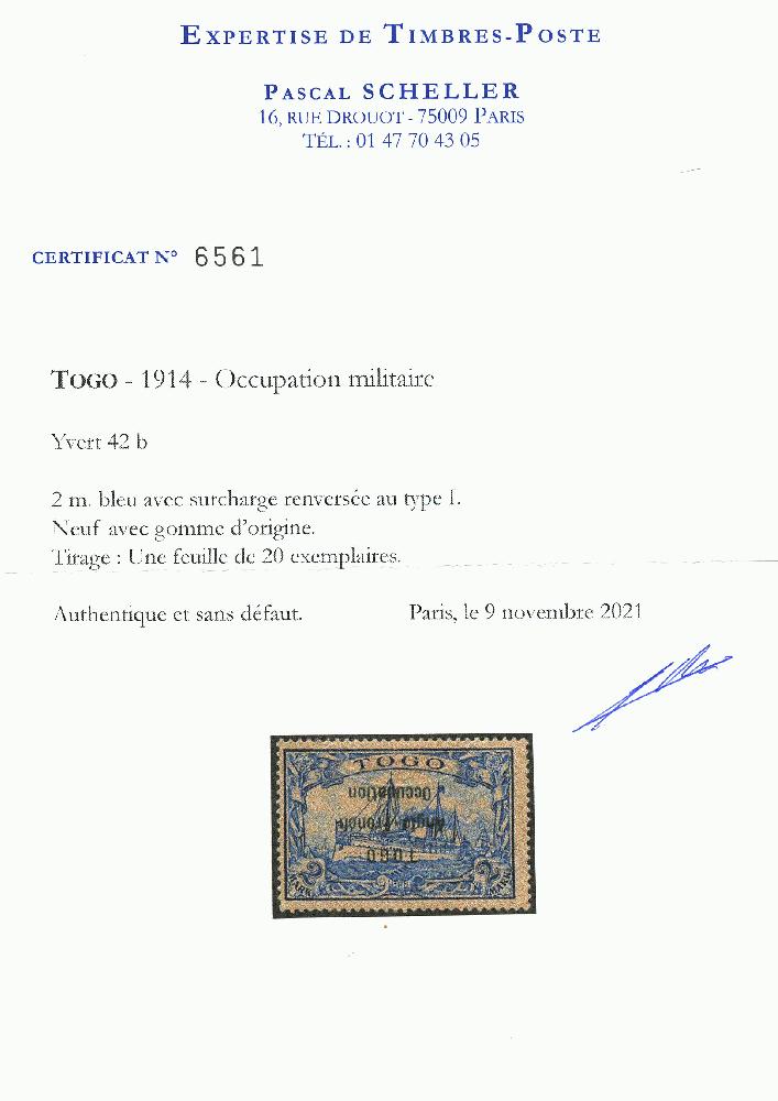 | Prüfgebiet: | Deutsche Kolonien Togo Französische Besetzung |