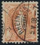 | Zusatzinformationen und Suchstichworte: | ebay.de 1907, Stehende Helvetia, 30 C., hellbraunorange Faserpapier mit Wasserzeichen Gezähnt 11 1/2:11 mit 13 Zähnen bzw. 12 Zahnlöchern senkrecht. Sauber gestempelt mit Tagesstempel von Rheineck Zarte waagerechte Bugspur, sonst tadellose Kabinetterhaltung. Gepr. Kimmel mit Fotobefund Michel 420,--, SBK 96B CHF 650,-- (!!) Preis 83,90 EUR |