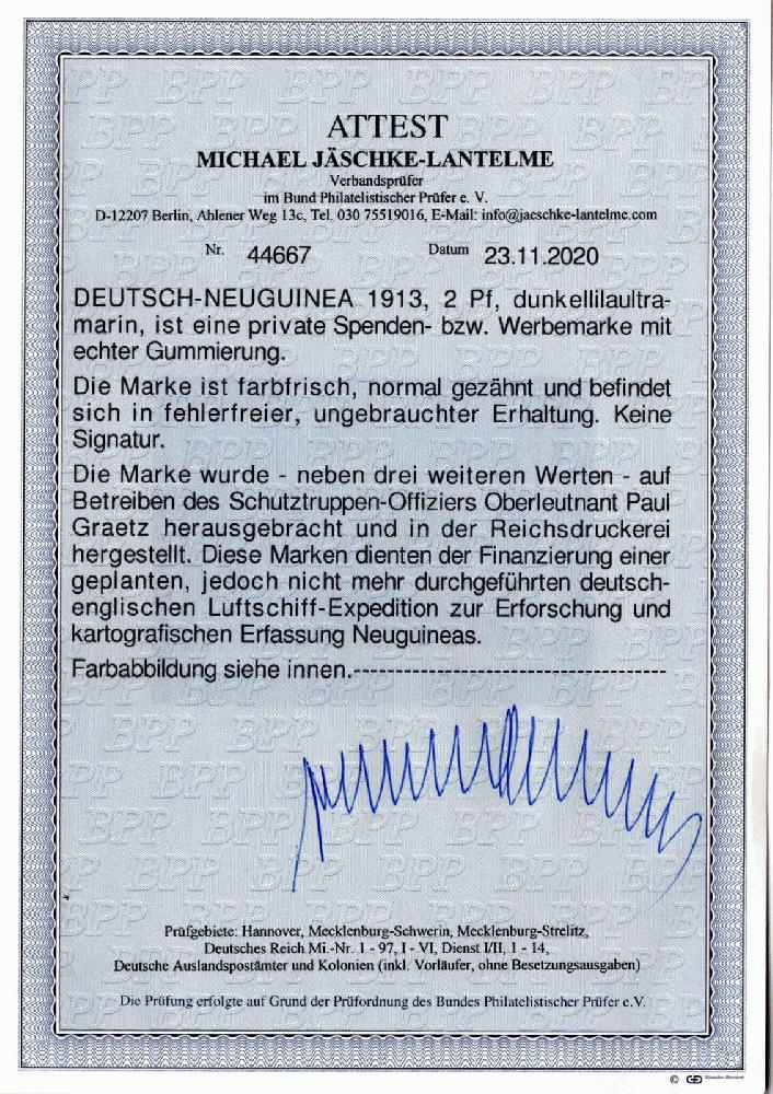 | Prüfer: | Jäschke-Lantelme, Michael (BPP (Bund Philatelistischer Prüfer)) |