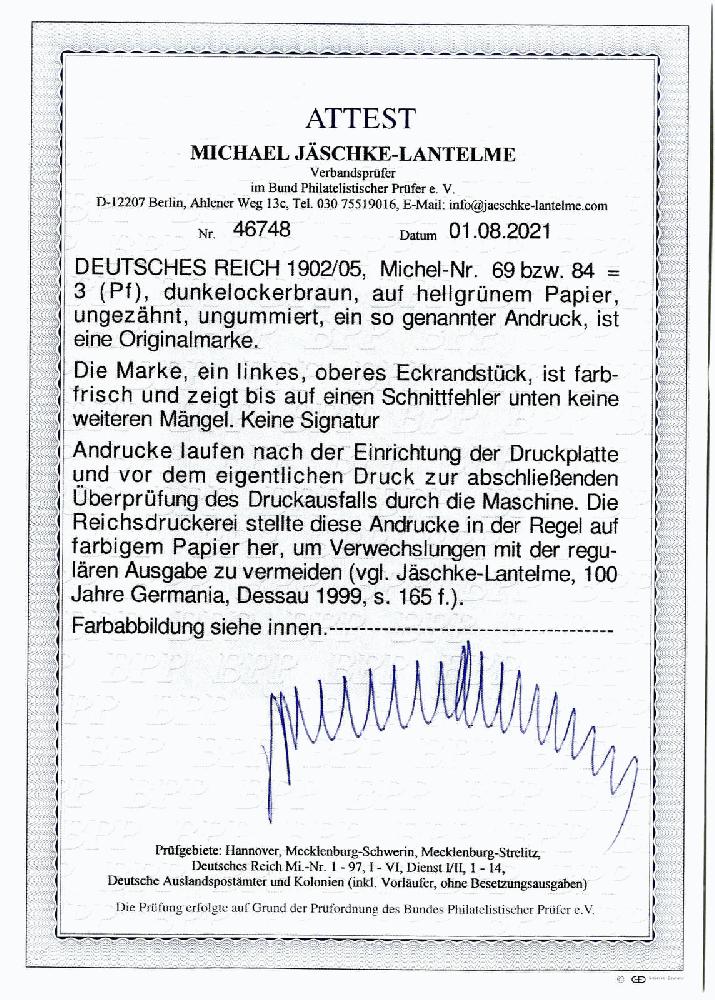 | Prüfgebiet: | Deutsches Reich 1871 - 1918 (Mi-Nr. 1 - 106) |