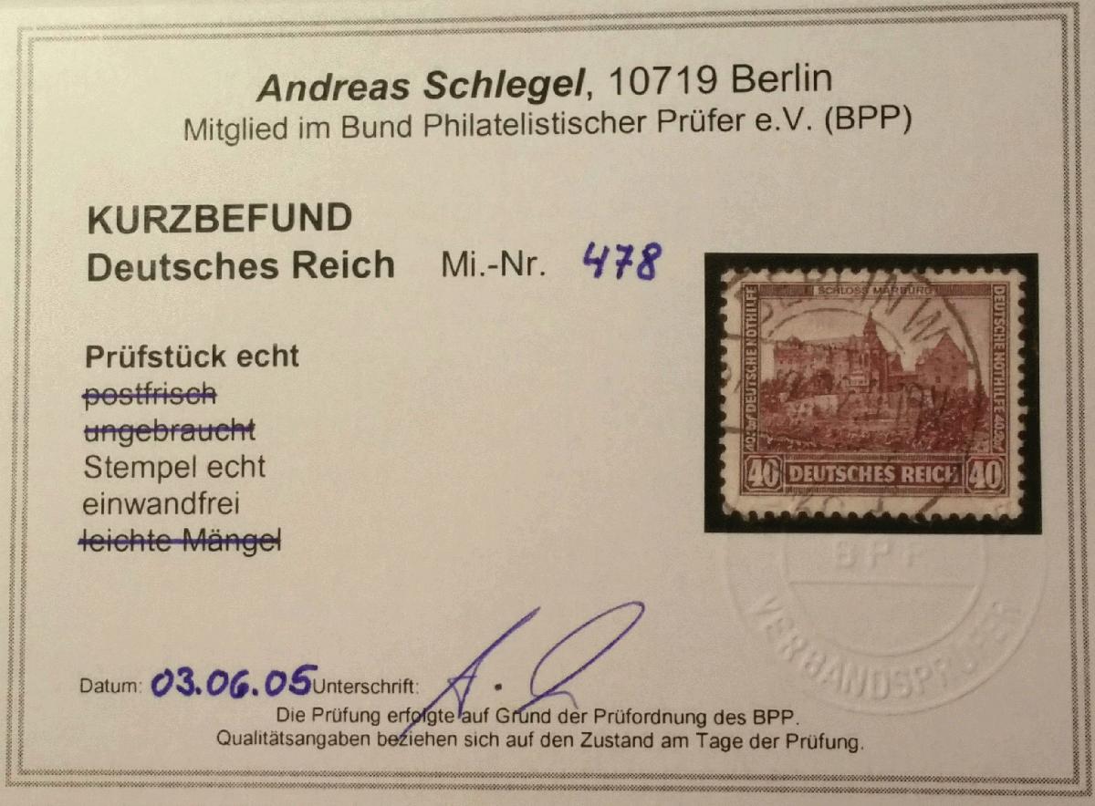 | Prüfer: | Schlegel, Andreas (BPP (Bund Philatelistischer Prüfer)) |