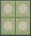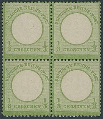 | Zusatzinformationen und Suchstichworte: | Ulrich Felzmann 34. e@uction 5. - 9. September 2022 Los 13274 Deutsches Reich, 1872 Grosser Brustschild 1/3 Gr gelblichgrün im Viererblock, die rechte obere sowie linke untere Marke je ungebraucht, ansonsten postfrisch, linke untere Marke mit Zahnfehler, komplett unsigniert mit Fotobefund Jäschke-L. BPP Ausruf 100,00 EUR |
