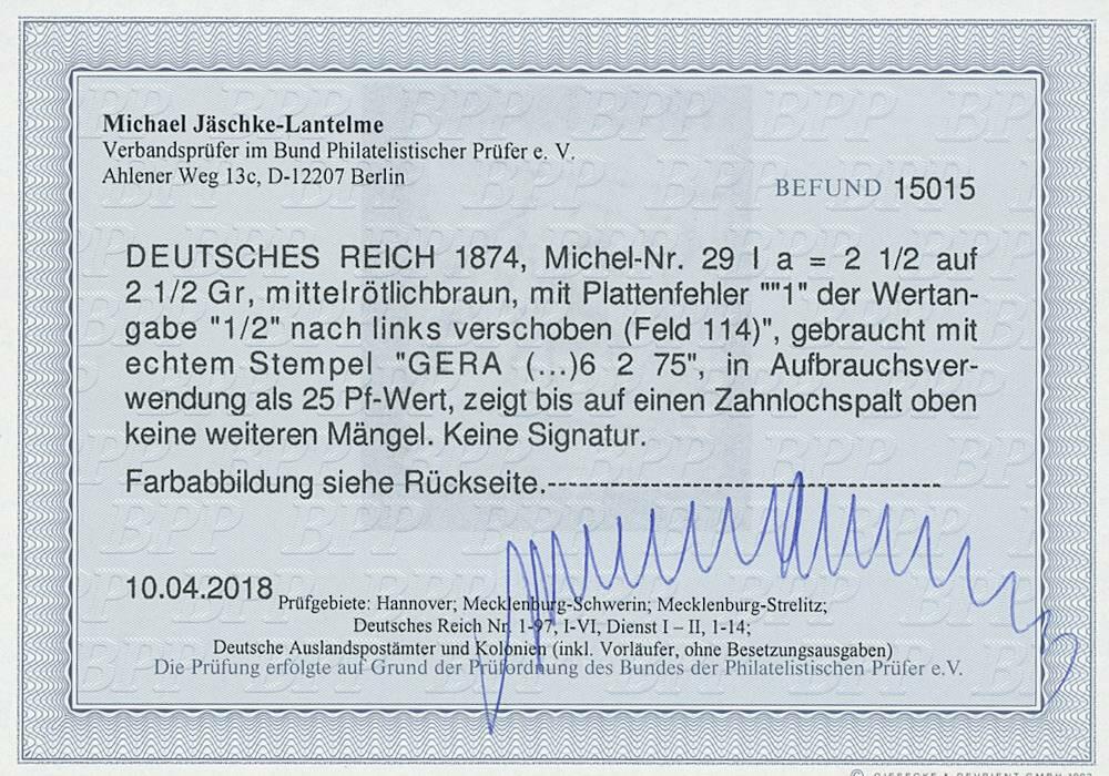 | Prüfgebiet: | Deutsches Reich 1871 - 1918 (Mi-Nr. 1 - 106) |