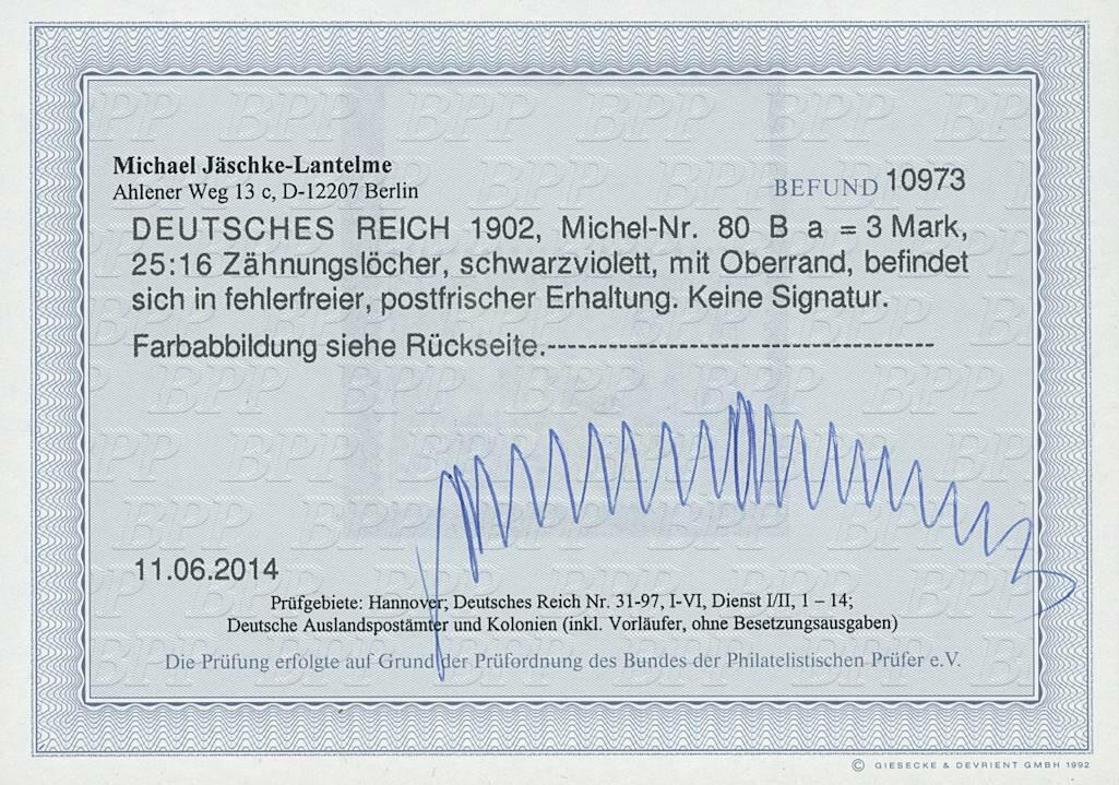 | Prüfer: | Jäschke-Lantelme, Michael (BPP (Bund Philatelistischer Prüfer)) |
