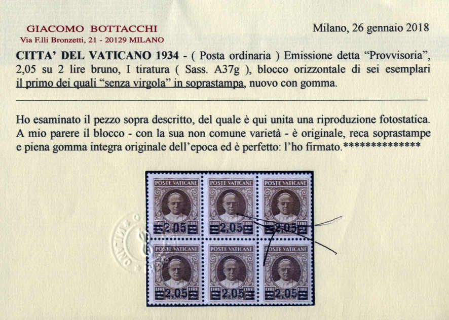 | Zusatzinformationen und Suchstichworte: | AAK Phila GmbH Los 1000007988 Vatikanstaat 2,05 a. 2 L Provisorium m. seltenem PF "fehlendes Komma", postfr. Luxus m. einwandfr. FA Bottacchi (für einen ehemaligen 6er-Bl.) Festpreis 99,99 EUR |