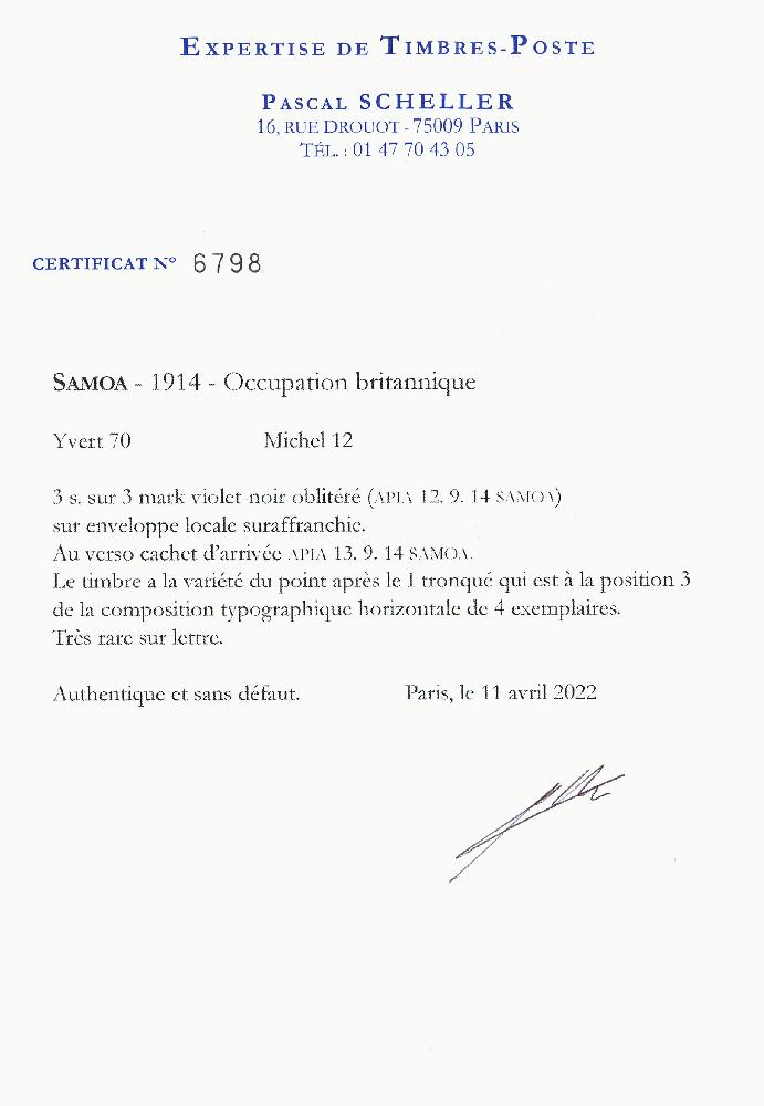 | Prüfgebiet: | Deutsche Kolonien Samoa Britische Besetzung |