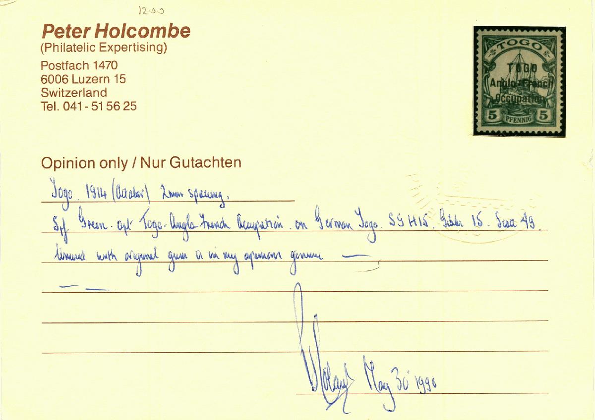 | Prüfgebiet: | Deutsche Kolonien Togo Britische Besetzung |
