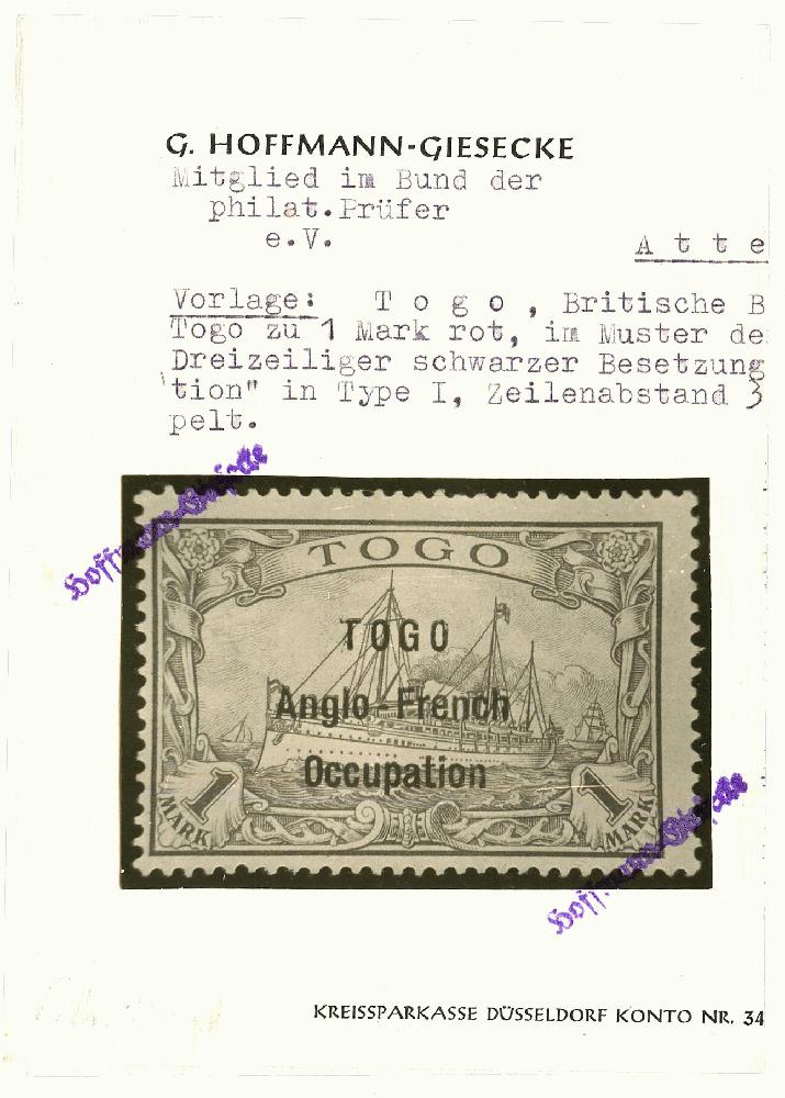 | Prüfgebiet: | Deutsche Kolonien Togo Britische Besetzung |