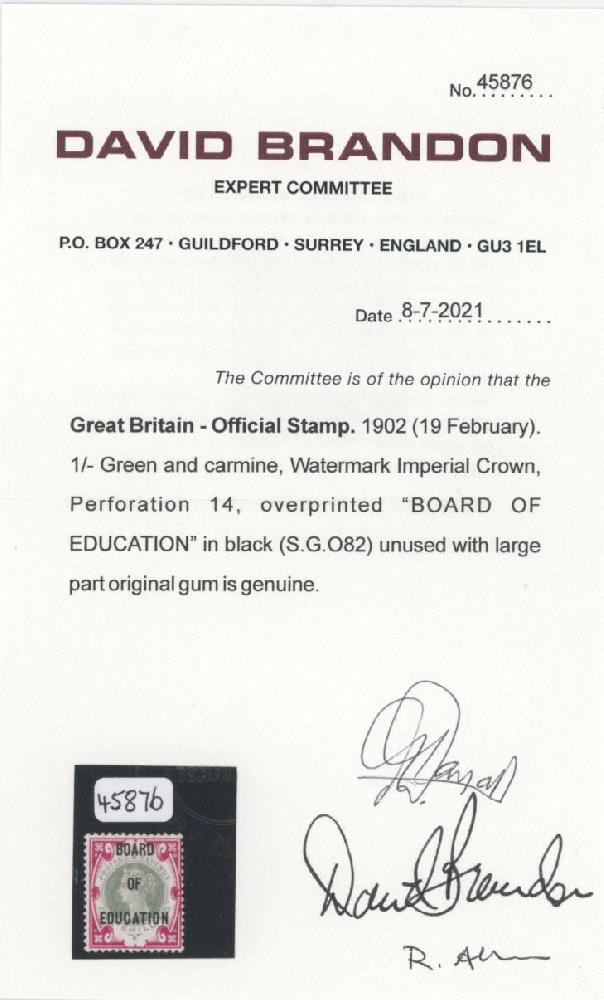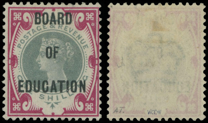 | Zusatzinformationen und Suchstichworte: | Raritan Stamps - 94. Auktion 26. - 29. Oktober 2022 Los 419 Grossbritannien König Eduard VII 1902, Schwarzaufdruck "Bord von Bildung" auf Königin Victoria 1s karminrosa und grün, kräftige Farben und einwandfreie Zähnung, Großteil von Originalgummi, zuvor gefalzt, fein und äußerst seltenes, sauber Prüfern Signatur auf der Rückseite, D. Brandon Attest, Katalogwert $10, 500, SG #O82, £12,000, Schätzpreis. $7,000-$8,000 Ausruf 4.000,00 USD |